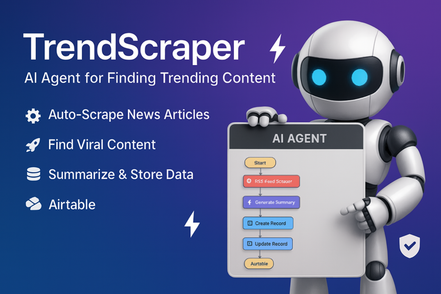 TrendScraper Agent is your always-on content discovery assistant for marketers. This AI-powered RSS feed scraper automatically finds, summarizes, and organizes trending news articles into an Airtable database so you can instantly turn breaking stories into viral social media content. Say goodbye to manually browsing the web or paying for content research tools, this automation delivers top stories straight to your marketing stack.